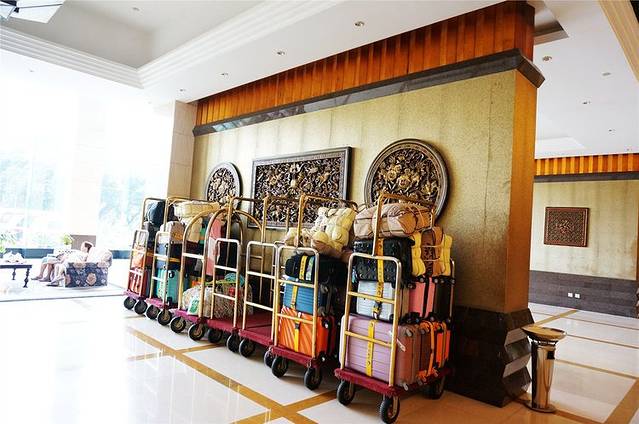 来饭店住宿的游客比较多,客房全部住满,看看门口堆放的行李便知。
