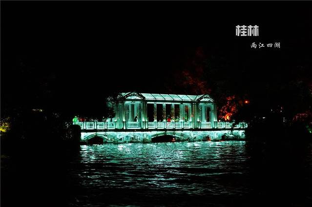 两江四湖是指由榕湖、杉湖、桂湖和木龙湖、漓江、桃花江所构成的桂林环城水系,两江四湖的水路贯通构成了桂林城市中心最优美的环城风景带。