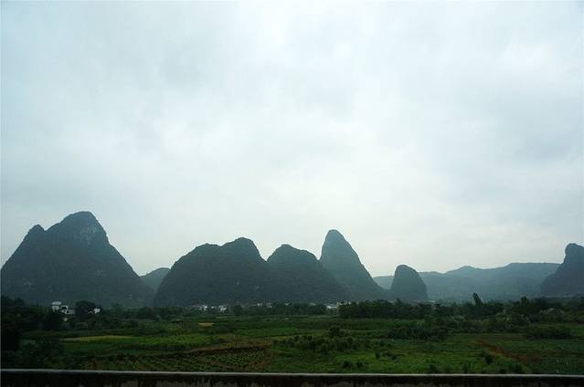 很快我们的车就来了,大家上车前往阳朔,一路上阵雨连连,雾气漫漫。