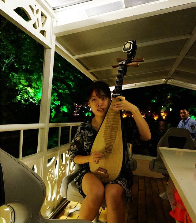 回程路上,船上导游还用琵琶弹起了小曲,迎着夜光下的晚风,听着动听的音乐,心情再一次无比放松。