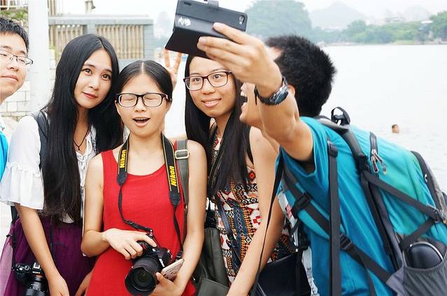 自拍狂人们还是兴奋到停不下来,又开始玩起来,这谁谁的手机,咋把美女们都拍花了呢。