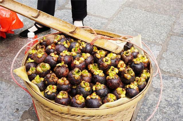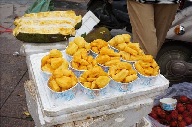 码头还有新鲜的水果买,剥好的大树菠萝,新鲜的红毛丹,还有本地产的山竹果,看得让人直流口水。