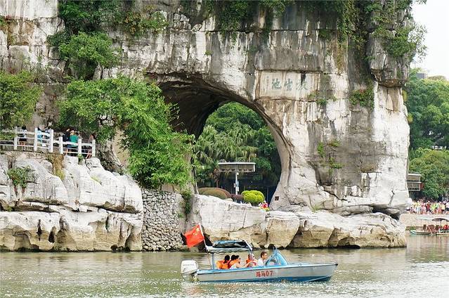 桂林城中的象山浮水月,峰倒碧波盈,漓江暮霭青,是风景是历史,更是桂林的城徽山,山体似一头临江吸水的巨象在水中嬉戏玩耍,由此桂林城中处处皆乐活。