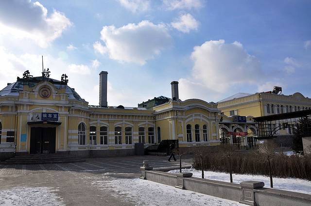 红色圆形屋顶,米黄色与白色相间外墙,墨绿色窗框,现在的香坊站,每日少有火车经过