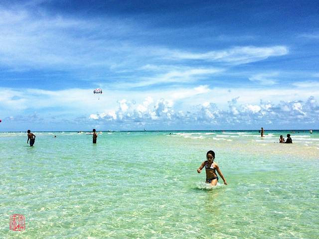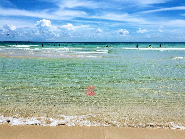 海水很棒,非常清澈,颜色渐变超级漂亮!近海沙滩坡度小,适合玩水,但沙子不是很白,颗粒比较粗。不过比北滩和劳德代尔堡的海滩强太多,所以就给4星吧。