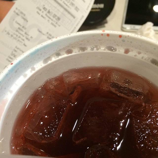 这个饮料接的时候是粉色的!然后可能遇空气就变蓝了,最后变成了这种颜色0_0