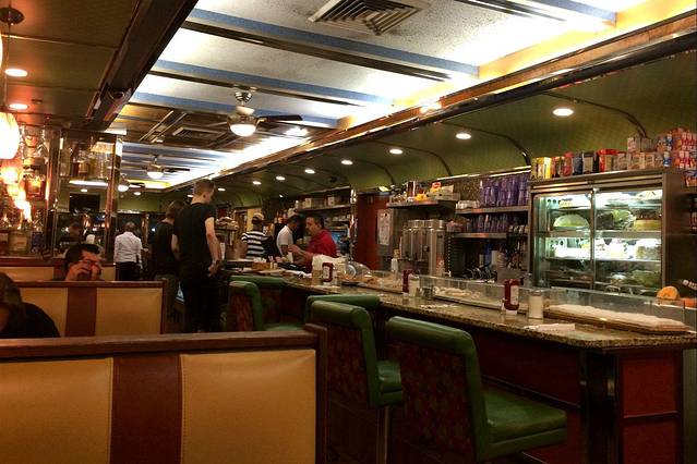 在洛克菲勒中心下沉广场吃的一餐。点了这么一份烤牛肉沙拉、一份西班牙冷菜汤、一份薯条、两杯酒,花了大概90刀,另有13刀的小费…