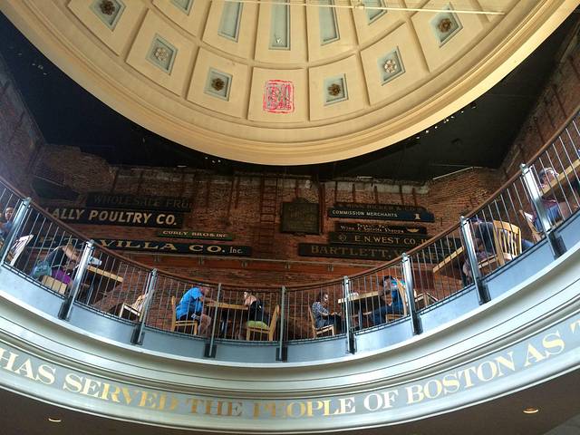沿自由之路来到法尼尔厅(Faneuil Hall),在它后面就是大名鼎鼎的昆西市场(Quincy Market)。市场里面全部都是吃吃吃,周边还有很多吃吃吃和其他购物场所,可以说是来波士顿的必逛之地。