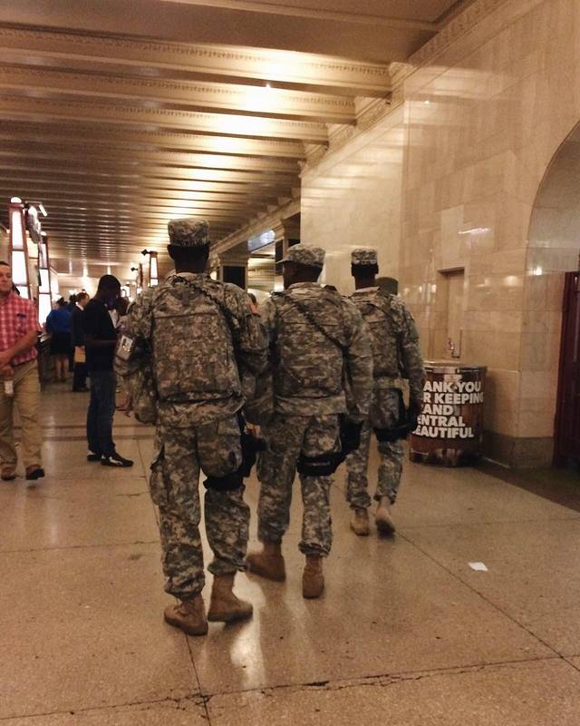 纽约反恐级别超高,车站里到处都能看到巡逻的大兵。