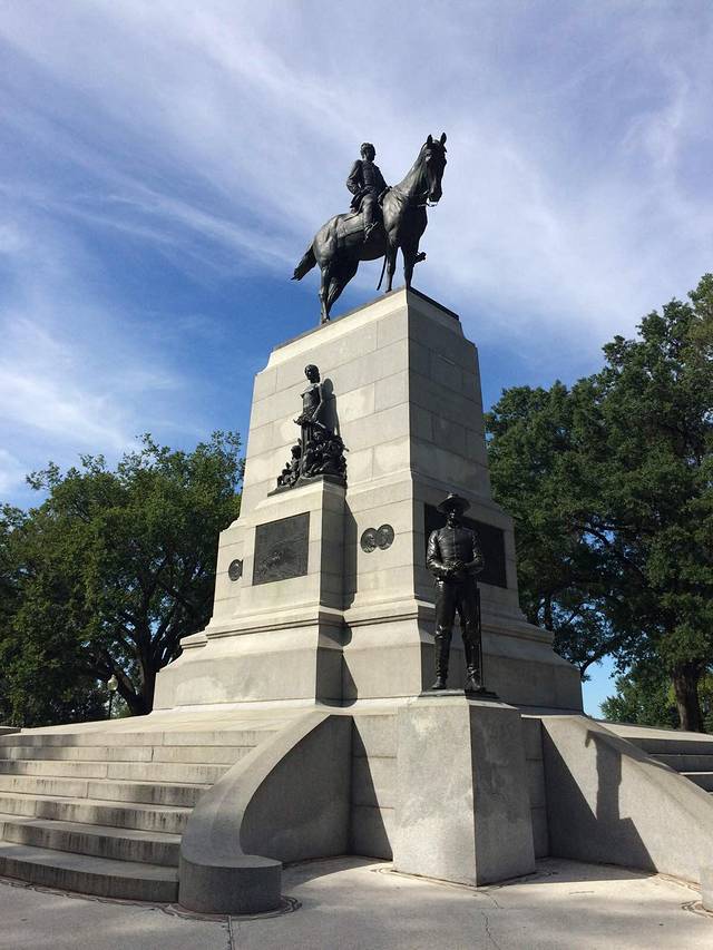 铜像好像对站在她头顶的鸽子很崩溃…