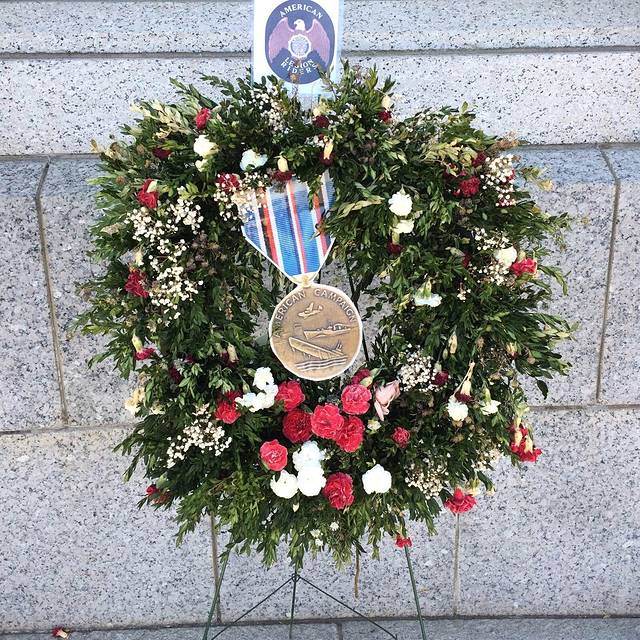 纪念碑下的花圈。