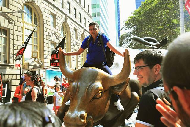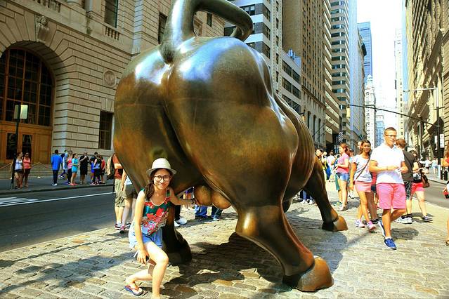 看到这几个大铜块就标志着华尔街到啦。华尔街真的好窄好不起眼。