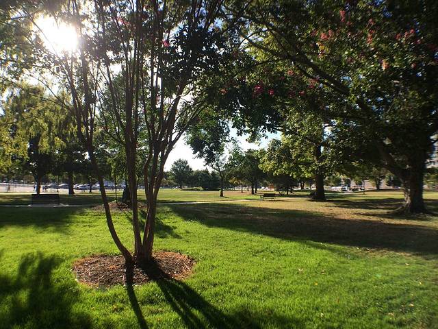 夕阳下的公园安静又富有活力。