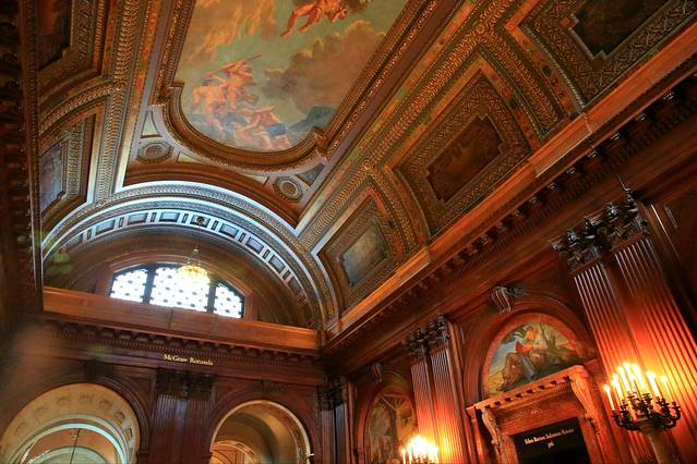 它里面有个大厅设计的很有趣,在大厅里对角站着的两人可以清楚的听到对方说话,有点像天坛回音壁的感觉。