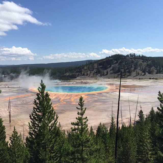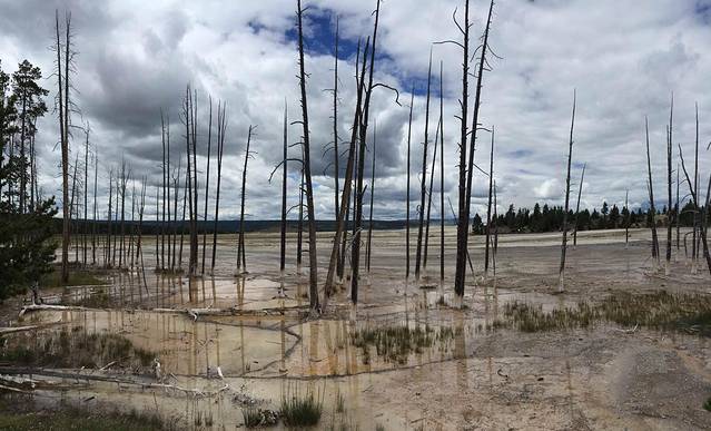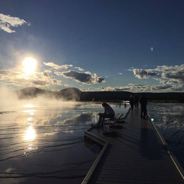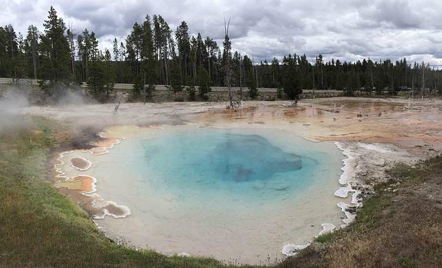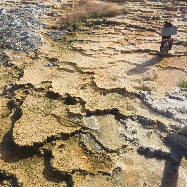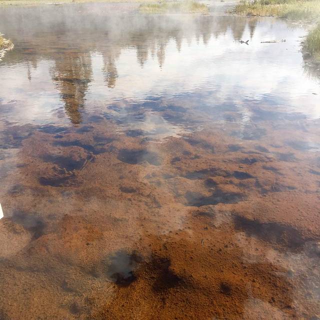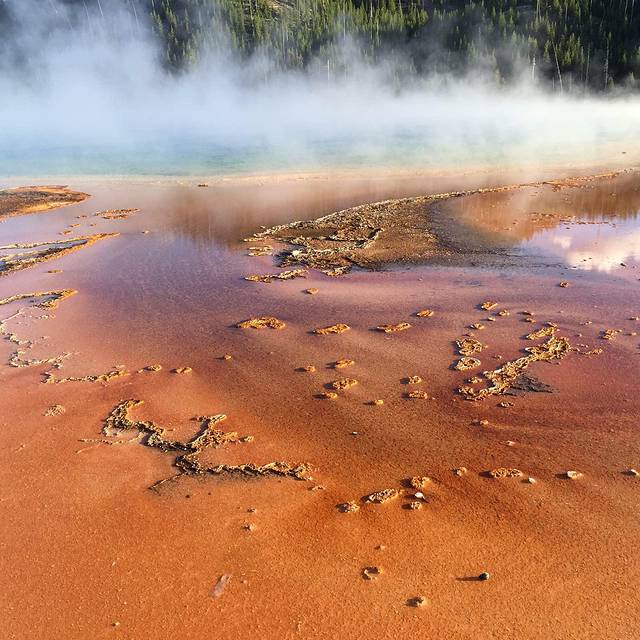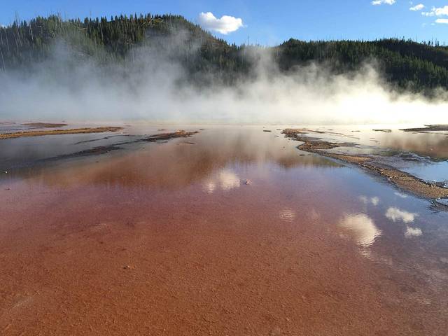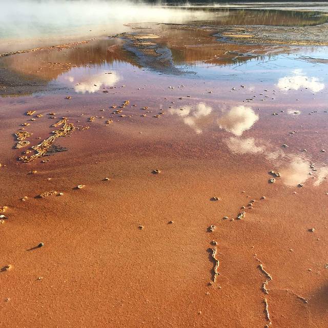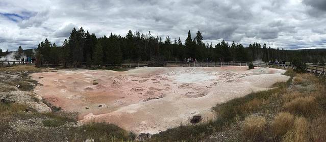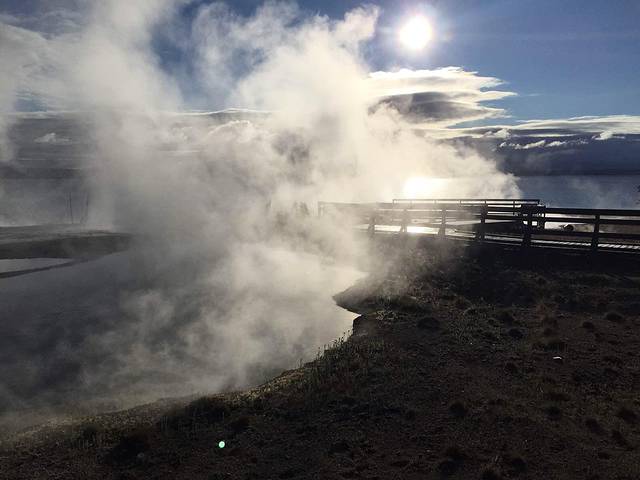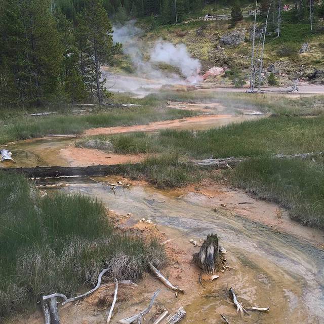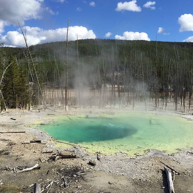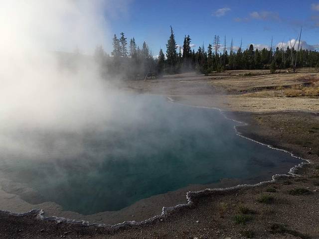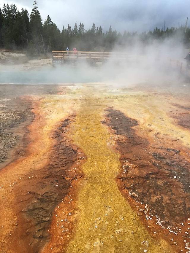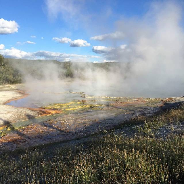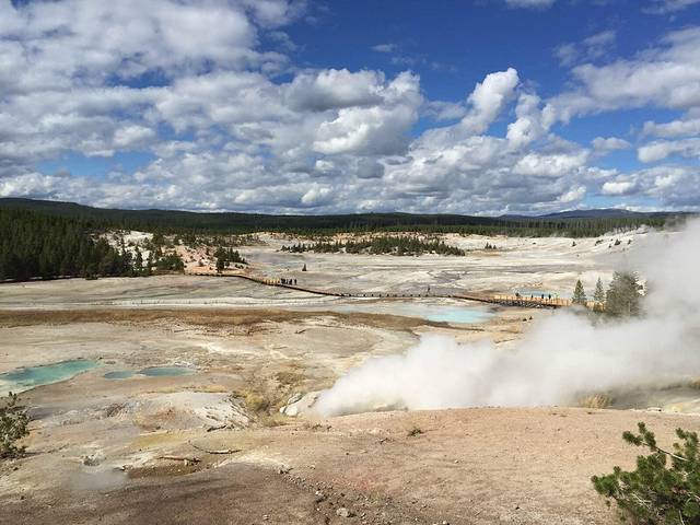 Norris Basin, 明朗的天空下似有黄龙的即视感,plus地热蒸汽