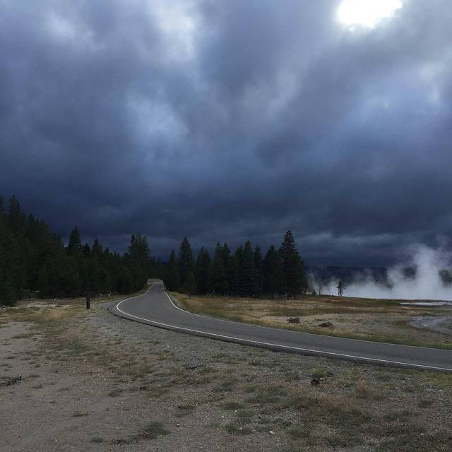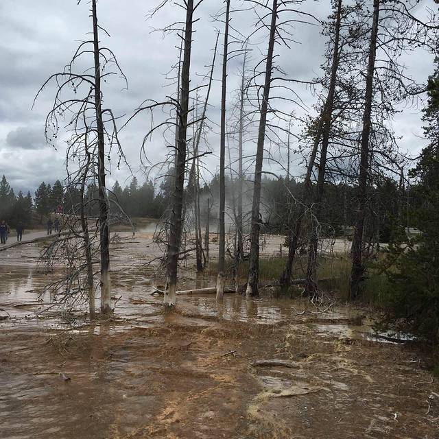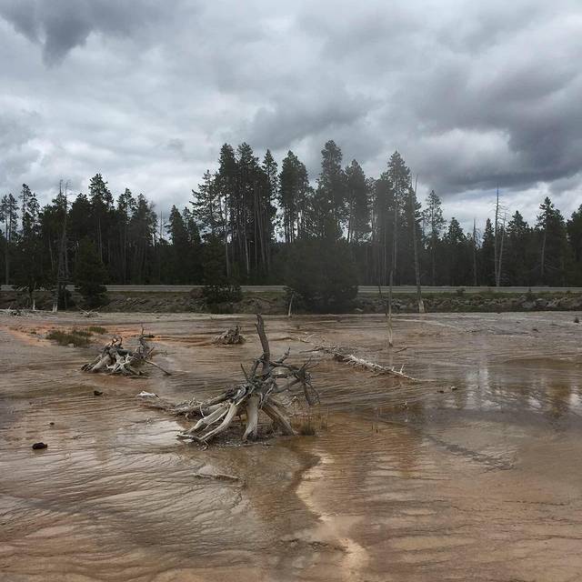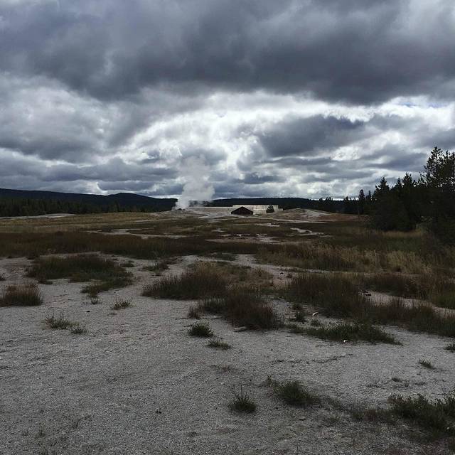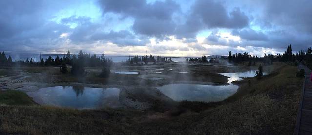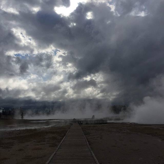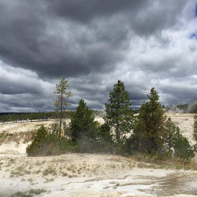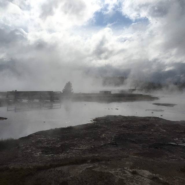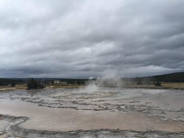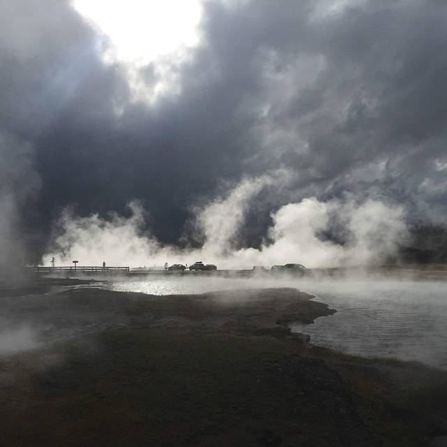 Firehole Lake,又是一群地热温泉,间歇泉,阴云下烟气氤氲,很有feel