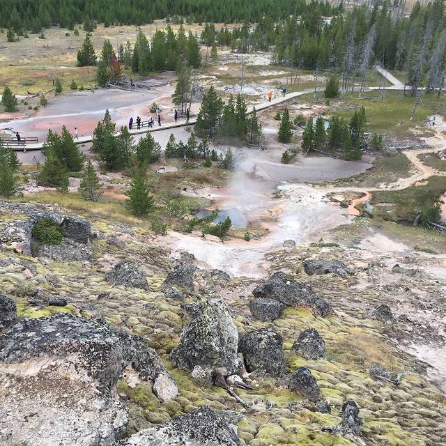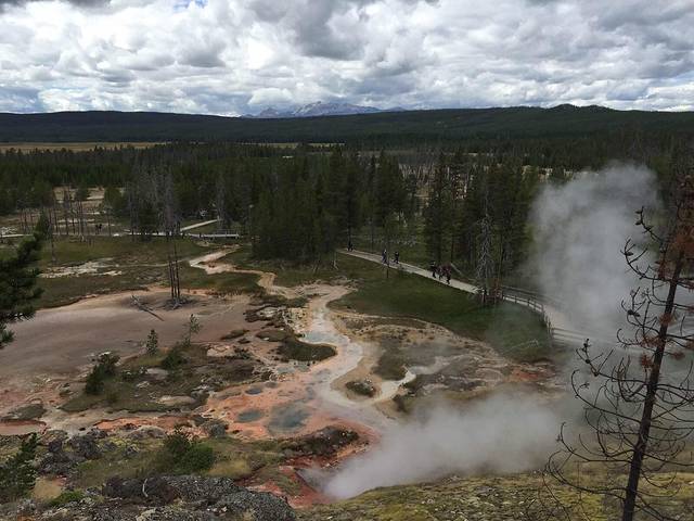 Old Faithful Inn背后就是主要景点Upper Basin,各种地热景点