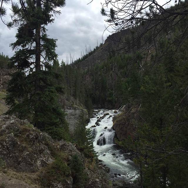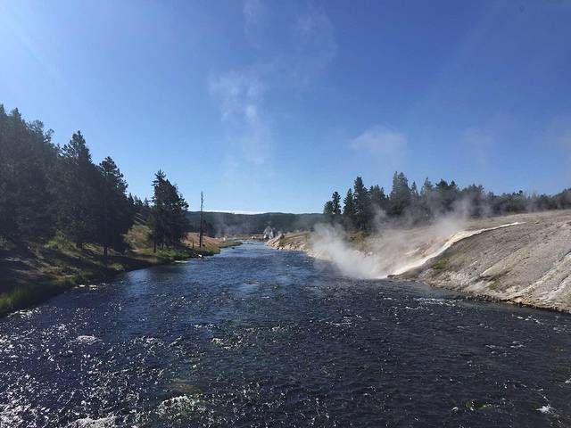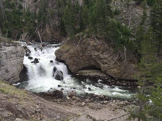 条岔路引向山中的firehole river小落瀑 (相对黄石峡谷的瀑布而言)