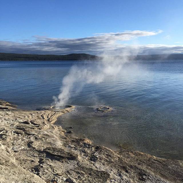 West Thumb是湖边的地热区域,据说整个West Thumb是曾经的大爆发造成的。如今平静的湖边,热泉处处,很有浪漫的感觉。