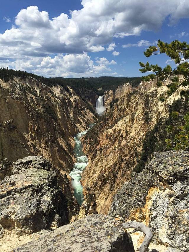 黄石峡谷,两阶落差造成了壮观的tower falls,这里应该是lower fall.