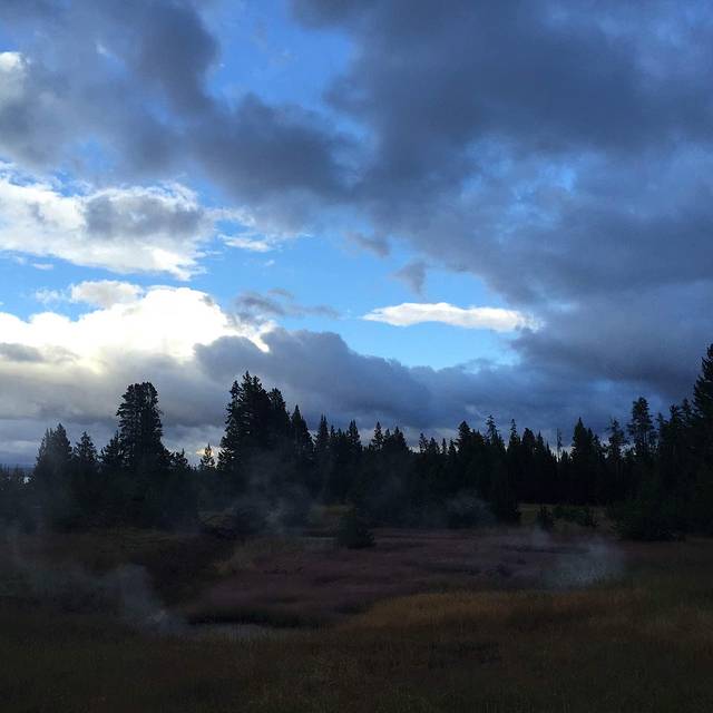 傍晚阴雨,气温骤降到0度左右,再到大棱镜,Firehole River一片烟雾迷漫