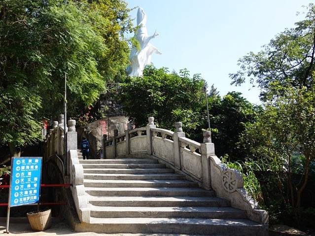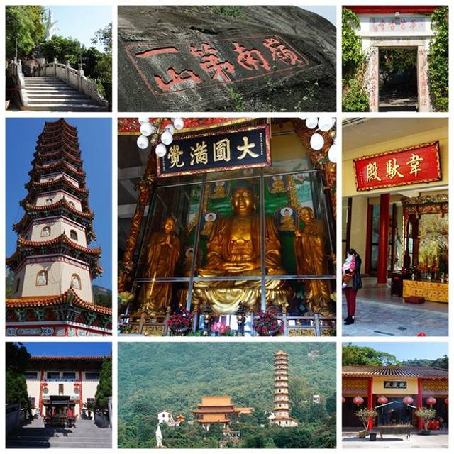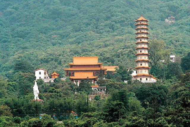 华首寺也叫华首台,位于罗浮山的西南面。建于唐开元年间二十六年,距今已有1200多年的历史。据说当年有500真人汇集此地而得名于华首寺,明万历年间,罗浮山香火旺盛,有十八寺,而华首寺被列为“第一禅林”。原有的鼓楼、钟楼、大殿在文革期间都被砸毁,只留下残墙断壁。直到1987年才由香港同胞关耀昌先生募集巨资重新修建。主要佛教建筑有:望海观音、天王殿、万佛塔、大雄宝殿、五百罗汉堂等。