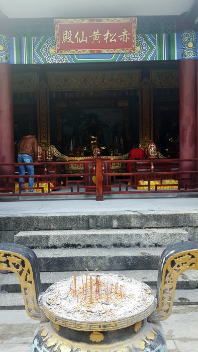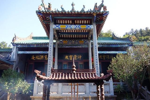 大殿东神龛供奉“轩辕皇帝”,西神龛供奉“太乙真人”。左侧有供奉葛洪和葛妻鲍姑的“葛仙祠”,有供“吕洞宾”的吕祖殿,有供奉浙江金华黄进野人的“黄大仙祠”。正殿左侧有古时葛洪炼丹取水的“长生井”,长年不干,古诗赞曰:“传闻地献宝,灵液出凤草,每日汲三升,何必安期枣?”我每次游历罗浮山,除了带回些客家腊肉、酥醪菜、客家酿酒等罗浮山特产外,必不忘记装上几大桶的长生水。