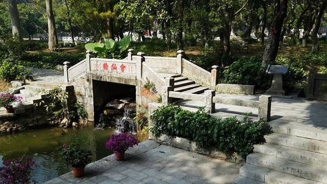 会仙桥位于白莲湖畔,桥面为弯石砌成,桥板正中刻有台湾爱国诗人丘逢甲书写的“会仙桥”三字。会仙桥有何仙姑揶揄苏东坡、铁拐李为苏东坡掷杖化桥的传说。