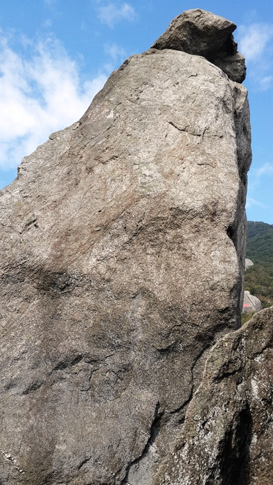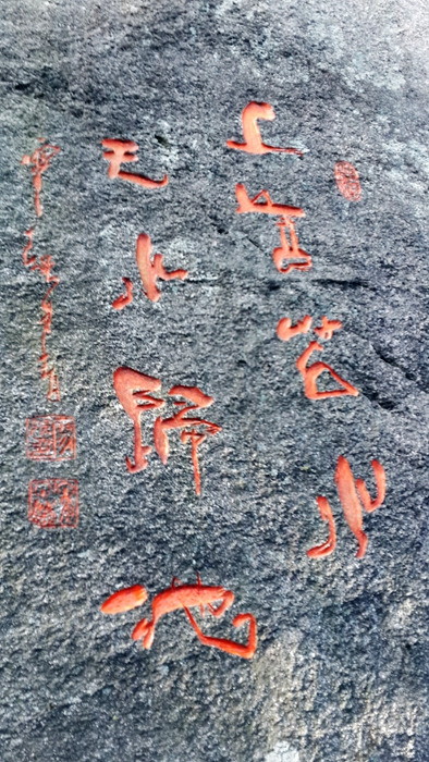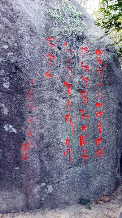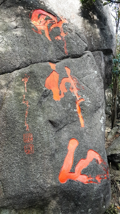 鹰嘴岩路旁怪石多多,岩石上留有很多的石刻碑记,其实鹰嘴岩本身就是一块巨大的怪石,因大远望极惟命是似鹰嘴而得名“鹰嘴岩”。登上鹰嘴岩,可以极目远望山下风景。