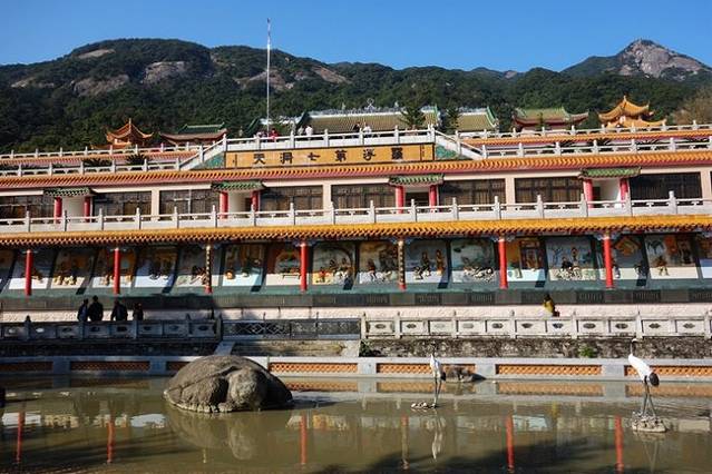 罗浮山黄龙观号称广东第一大观,虽然原址重建开光至今时间不长,但有关黄龙洞的历史传说可追溯至五代十国时期。黄龙观位于罗浮山西南麓罗浮山的山腰处,玉女峰下的黄龙洞中,是罗浮山著名的十八洞天奇景之一。目前黄龙观有两座大殿,道学院,祖堂,仙苑等处,亭台楼阁,池塘瀑布。黄龙观总面积约为15000平方米,是罗浮山现存寺观中占地面积最大,建筑规模最为宏伟的宫观。也是华南一带道教全真龙门派占地和建筑面积最大,宗教文化氛围最浓的主要道观之一。