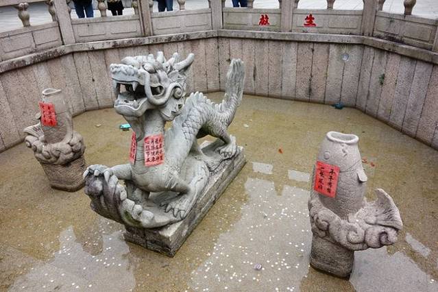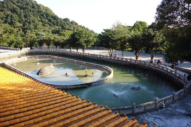 九天观的原址是现在的西华道院附近--我们要参观的下一个景点--现在的九天观是异地而建的。九天观内保存有一个完好的石香炉,炉身正中刻着“殿前宝炉”四字,下刻“咸丰十一年辛酉旦且虔奉沐恩弟子邓信合诚心敬立。”观前放生池雕塑有龟蛇,池旁植水萝松数株,基奇古,殆千百年物。九天观里面的环境很清幽,还有几棵上百年的水萝松。