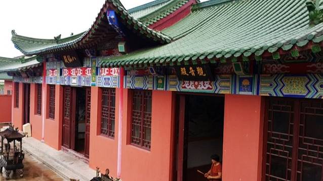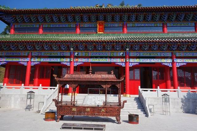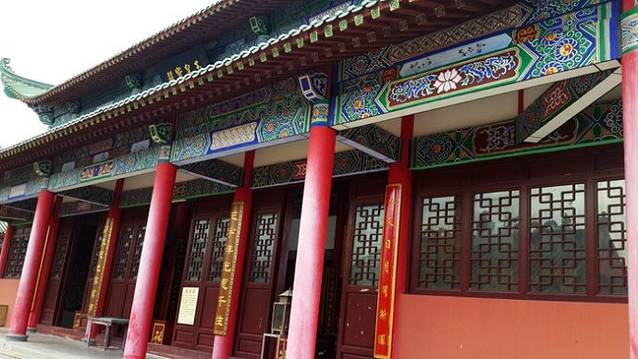 据说陪同我们参观的道教中人士介绍说,异地重建的九天观除了山门和牌坊还保持了传统道观的青砖绿瓦灰瓦硬山顶农家小院的建筑特色外,其他的大殿如正殿玉皇殿,偏殿九天玄女殿、观音殿、元辰殿......都采用了佛教的高端丈上档次的大红亮绿元素。相比之下,我更加喜欢前者的深沉不张扬。