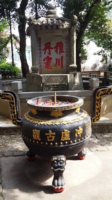 冲虚古观后面,有葛洪留下的炼丹炉和洗药池,炼丹炉基座由花岗石砌成八角形,按方位分为乾、坤、震、巽、坎、离、艮、兑八卦图形,还雕刻有鹤、麒麟等灵禽异兽。还按五行学说,分别填上青、黄、赤、白、黑五色。炉形恰似太上老君的葫芦药瓢,鼎盖则为荷叶形,还有可转动的柄等等机关,就当时的工艺水平来说,可称世界之最。