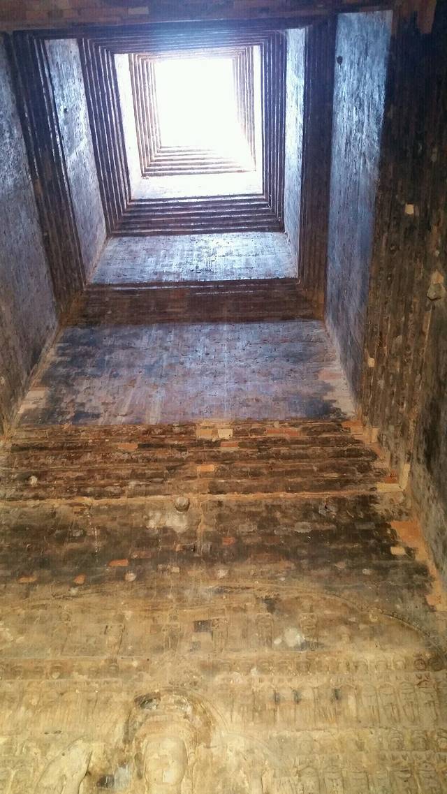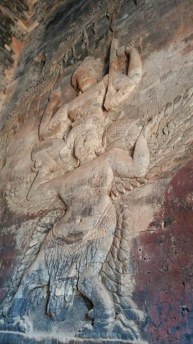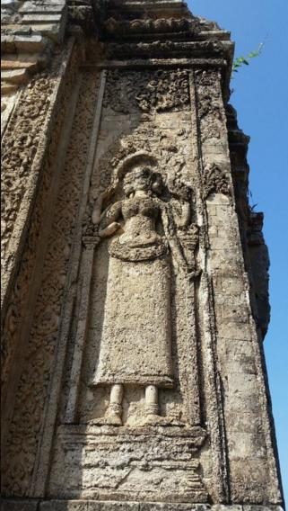 信奉佛教的比粒寺是金字塔式寺院,3层红土平台并列建造了5座殿堂,规模宏伟,也是要勇气和力气爬上去,台阶高又陡,但作为新年第一天第二站,我们表示还是没有太大压力的。亮点在于中央殿堂及其周围的精美女神像。