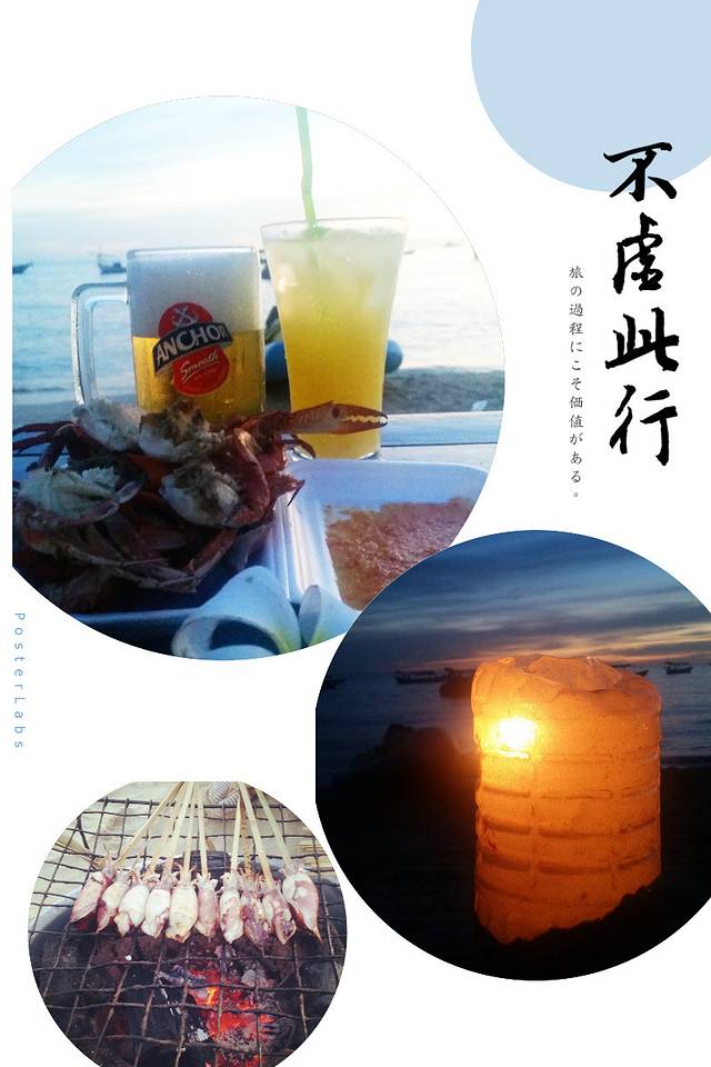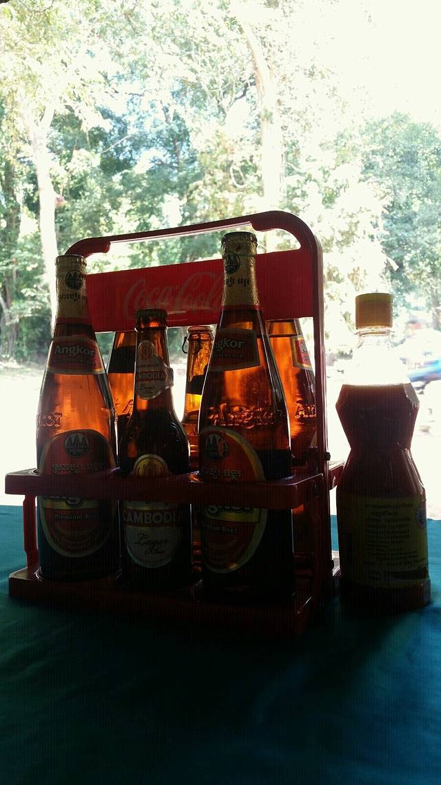 心满意足的海边烧烤和饮料。哈哈,吴哥啤酒!