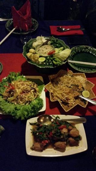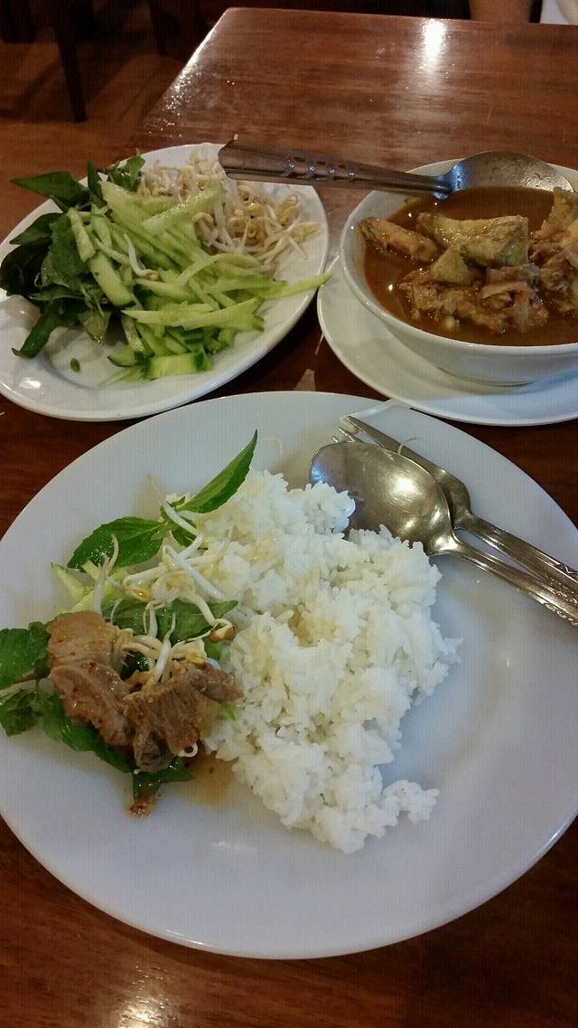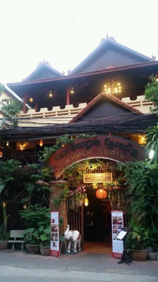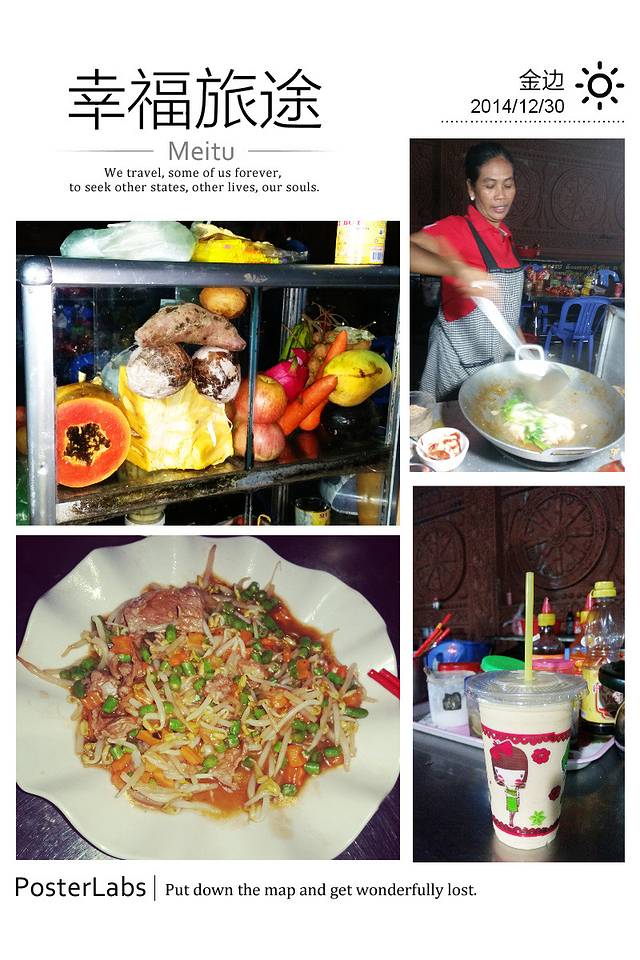高棉斯林,木制结构本土风格的柬埔寨餐厅,环境不错,可是口感地道又奇特,不是很适应啊。餐牌只有当地文字和英文,没有图片,这对于对当地菜名没做英文预习的我来说,存在不少难度,只好求助于隔壁桌,看菜点菜。