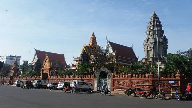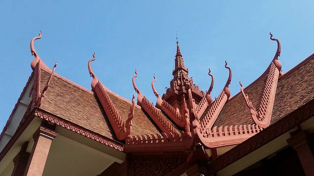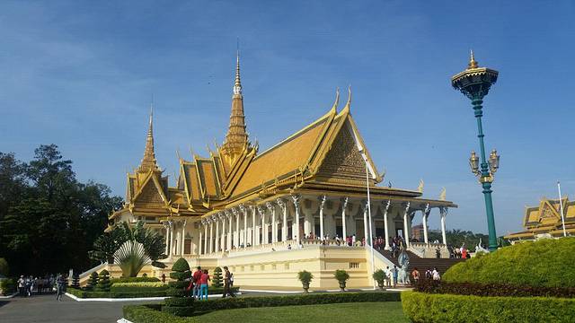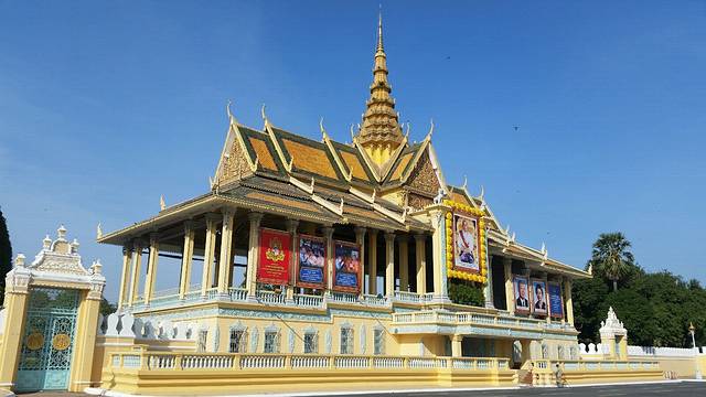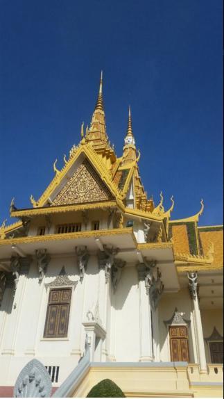 蓝天下的金色皇宫格外漂亮,金色是为了蓝天设计的吗?加冕厅,银殿,拿破仑三世阁,宴会厅,安东国王、诺罗敦国王和甘达帕花公主的骨灰塔,每幢建筑都显得庄严肃穆,这里,理应得到发自内心的敬意。