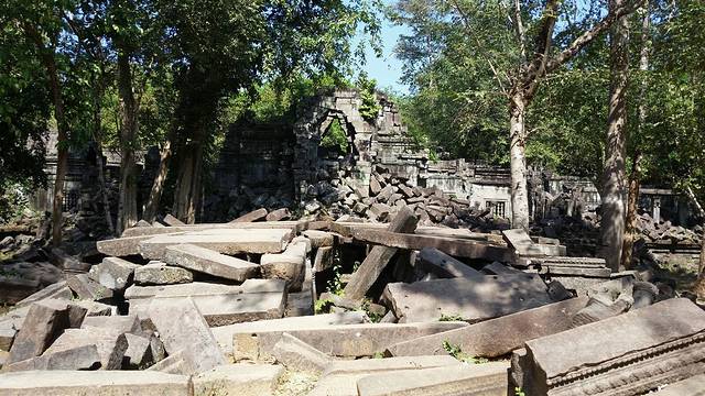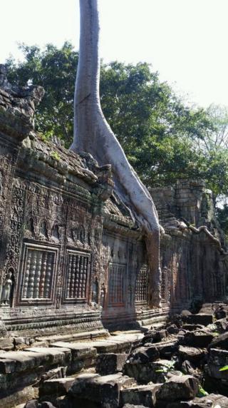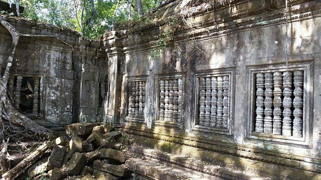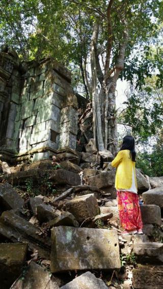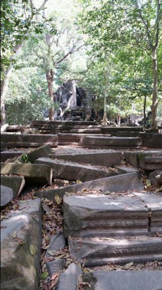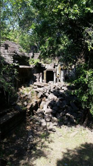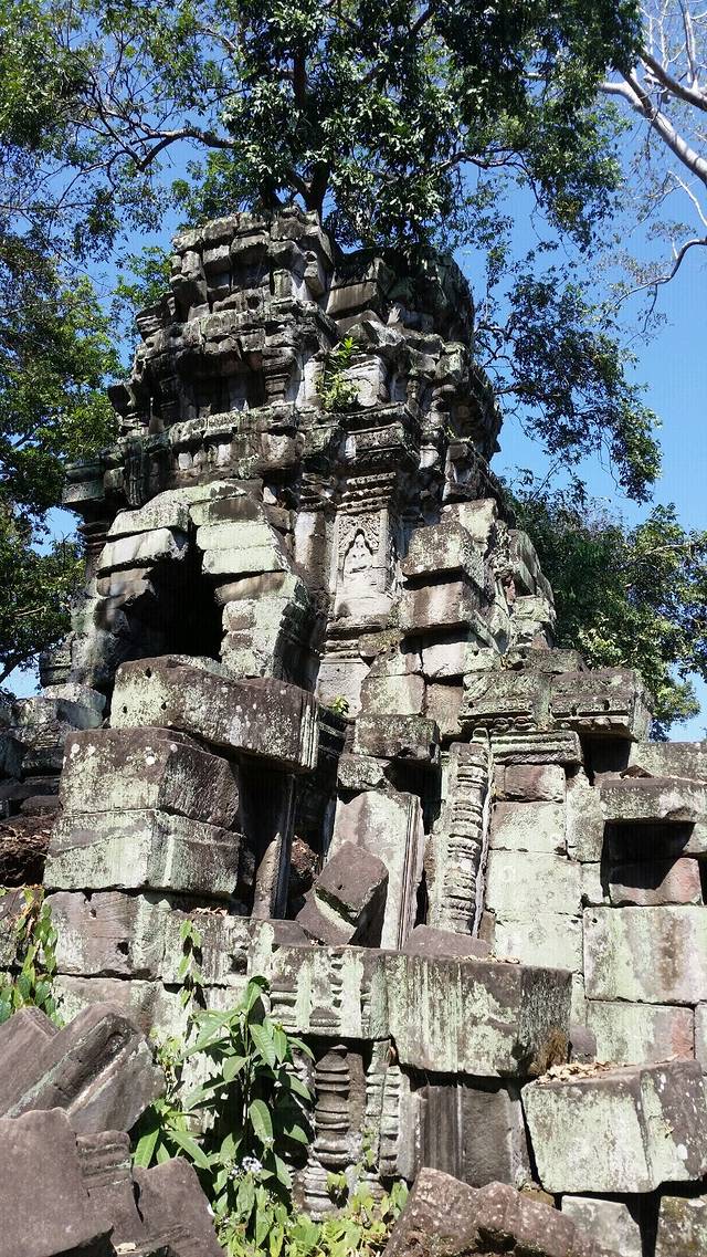 崩密列静静地沉睡在密林中,至今依然没有修缮,看到的是大自然的力量在荒无人烟寺庙上的伟大显现。当年该是跟吴哥寺一样壮美的建筑,如今,一切的一切都只能任凭想象。