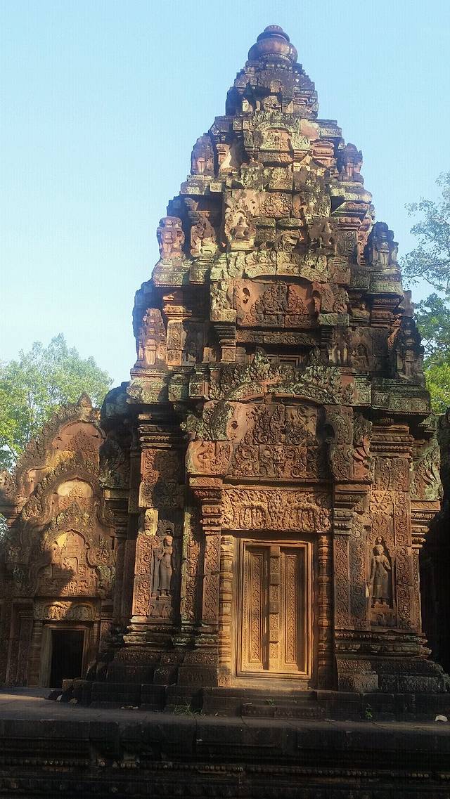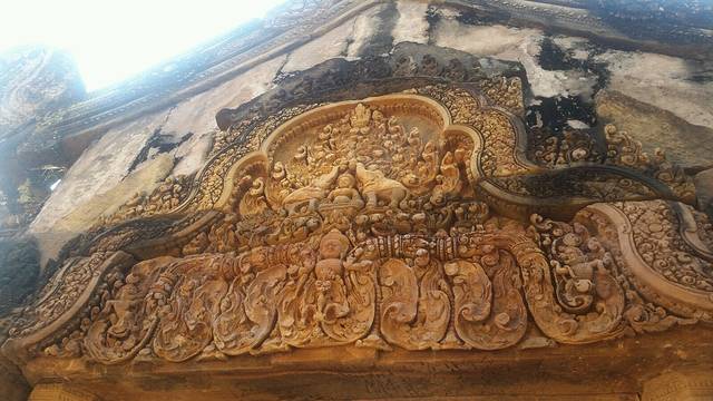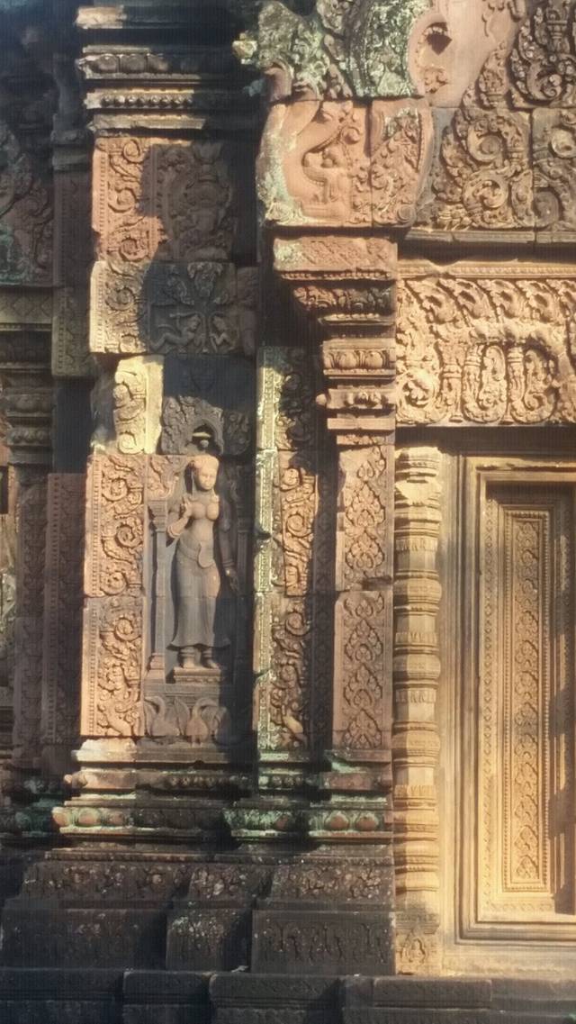 女王宫,尽管最佳参观时间是上午,但她的美丽其实无所不在,下午也足够让人赞叹不已。女王宫的建造取材于红色的岩石和红土,她充分诠释了浓缩就是精华,拥有独一无二的火红色彩和无比精致的美丽雕刻。