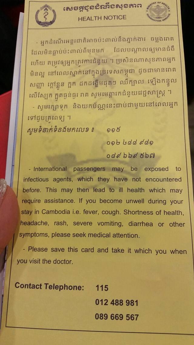 果然如LP中所写那样,会有各种疾病的可能性,海关人员在我们提交了健康申请后体贴送了份大礼,有如上症状记得拨打电话哦!