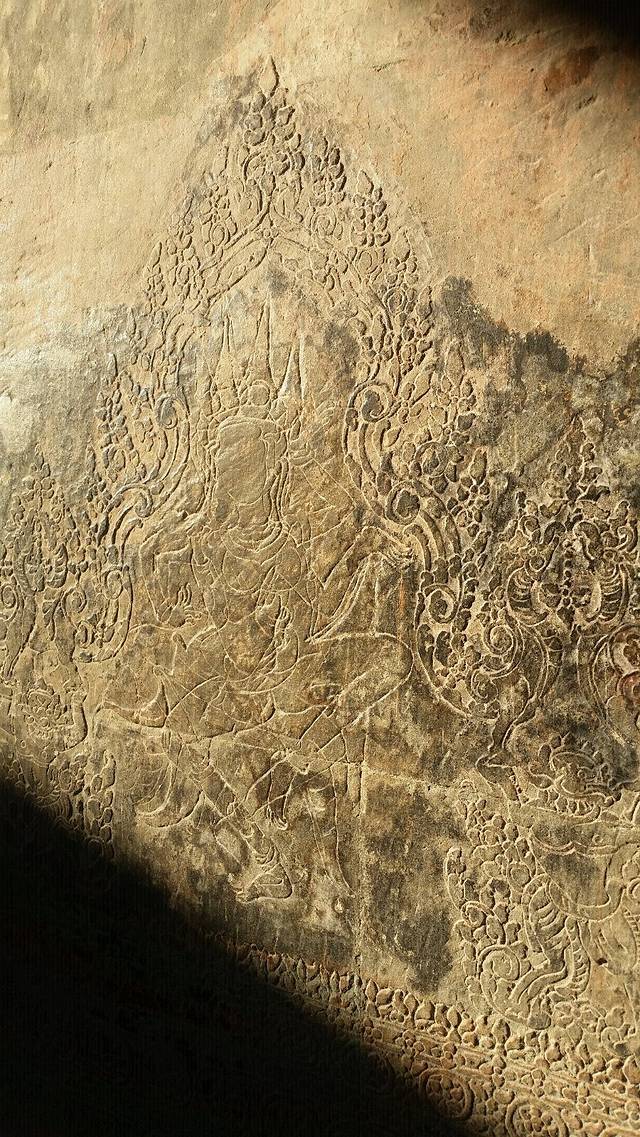 酒店的墙上浮雕有着独特的吴哥气息,忍不住穿上高棉风格浴袍入乡随俗mark下。