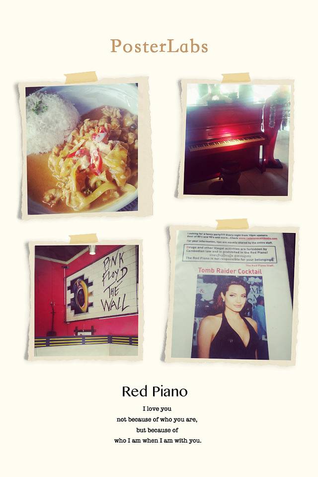 临走前最后一餐,选择在午后时光来到红钢琴,这家因为安吉利亚.朱莉而名声大噪的酒吧晚上通常是座无虚席,这个时间,刚刚好,可以再最后悠闲地看看暹粒繁华的街道。