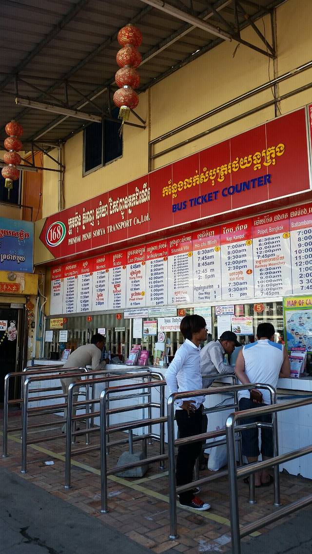 为了赶赴前往西哈努克市的巴士,必须找到中央市场。日本大宝石攻略地图提供的信息也有误啊,按图索骥,怎么都找不到两家巴士站。然后各种问路,警察叔叔不清楚、加油站阿姨不清楚,还是华人店家爷爷人nice,提供了大致方位,终于在市场西南角找到车站。