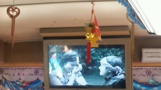 巴士上播放的mtv很有当地风情,很有意思,都是男女青年相互羞涩爱慕,然后女孩假嗔,男孩赔笑,两人又和好如初。还有一点让我深信这不是80年代版本的是竟然有曲子是春天里呀,这个蛮现代的嘛!