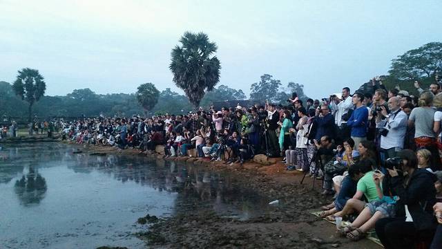 心急火燎终于在最后时刻爬上巴肯山,与壮观的人潮一起欣赏大名鼎鼎的日落。怎么样都要在新年来看吴哥的全貌,因而期待值相当高,可是,完全被汹涌人群打败了。凡是出名的地方就是看热闹的地方啊。好了,遂了心愿,看到了完整日落,2015,你好!
