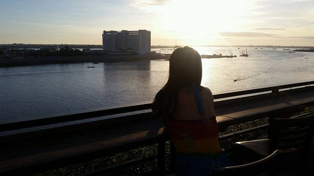 冥冥中有天注定吗?很晚睡着,很早醒来,不到6点,刚好邂逅洞里萨河的日出,远处河上漂着缓缓移动的小舟,伴随着颂佛的声音,莫名的感动就这样涌上心头。
