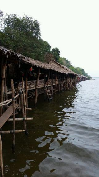 tuktuk据说又快又好,由是越过的士直奔热情好客的tuktuk车。可是啊,半夜三更的Chinese面孔获得的是10刀的要价,为了支持本地的经济发展,那好吧,10刀就10刀。风呼啸而过,我的眼睛都快睁不开了,不时有尘土扑面,这算是和金边首次亲密接触吧。20多分钟后,经过与司机的共同寻找(这里的路和街道喜欢以数字命名,Hotel位于洞里萨河边的138街上),终于在凌晨1时顺利到达,真是风尘仆仆!