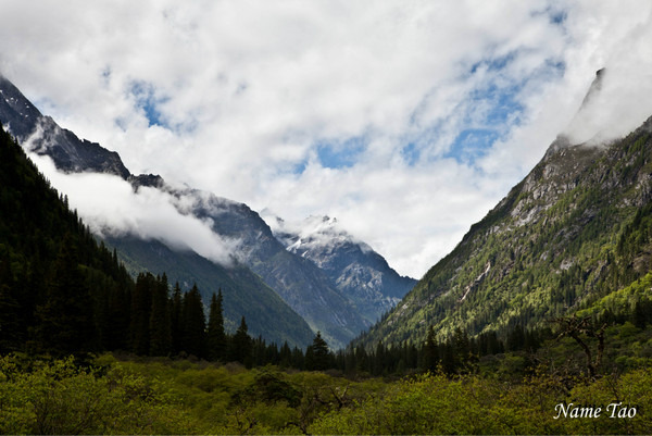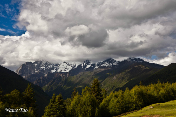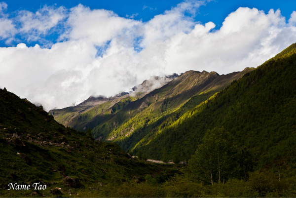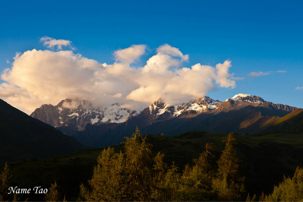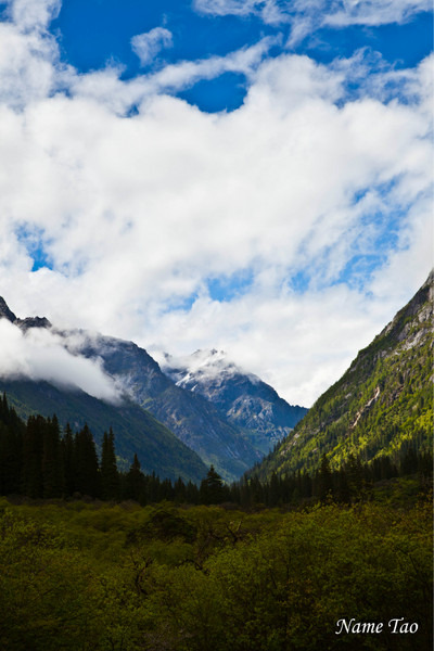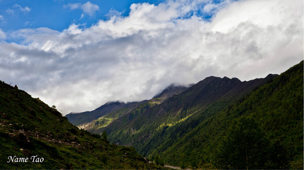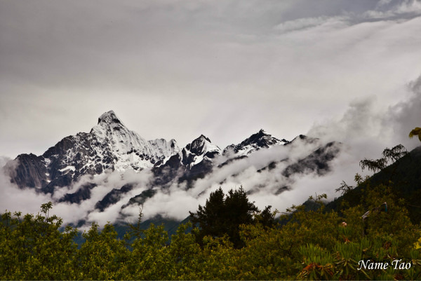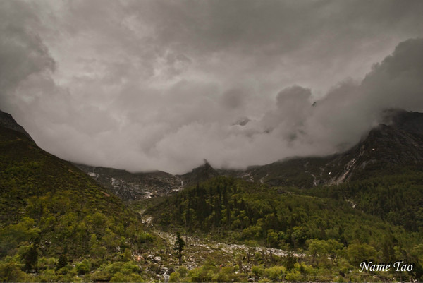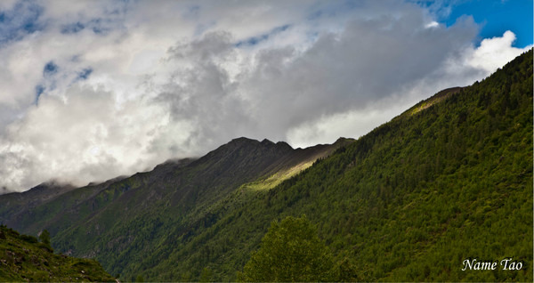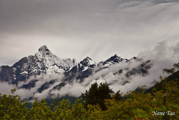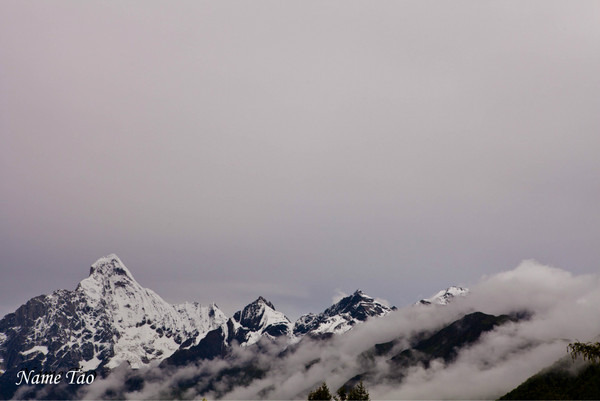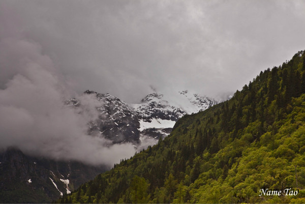原本期待着在猫鼻梁拍摄大作的,可惜雾太大,害羞的“四姑娘”始终不可露出真面目啊!传说与四姑娘住在同一村,有个叫央青达尔吉木匠,他与四姑娘自小在一起,青梅竹马,两小无猜。当四姑娘与魔王战斗时,木匠正在为从西方来的一位传扬佛法的弟子修建庙宇,当他听到四姑娘变成了雪山后,十分悲痛。他沿着长平沟往上跑,想见四姑娘最后一面,没想到来到四姑娘仙化的地方,她早已变成了雄伟的雪山。看着圣洁美丽的四姑娘,他淆然泪下,觉得尘世间的事对他已没有什么牵挂。他忽地变成了一道圣洁的白云,终日围绕在四姑娘的山峰上,以表白自己对四姑娘的钟爱。直到今天,他依然守候在山峰之上,人们要见四姑娘真实的面庞十分不易,除非有缘,那四姑娘山峰上的云彩才会打开,让人们一睹仙女的芳容……