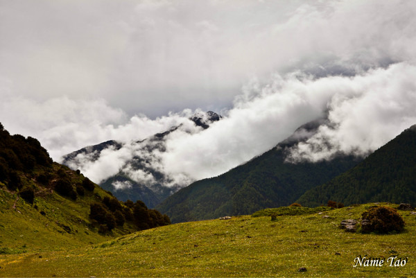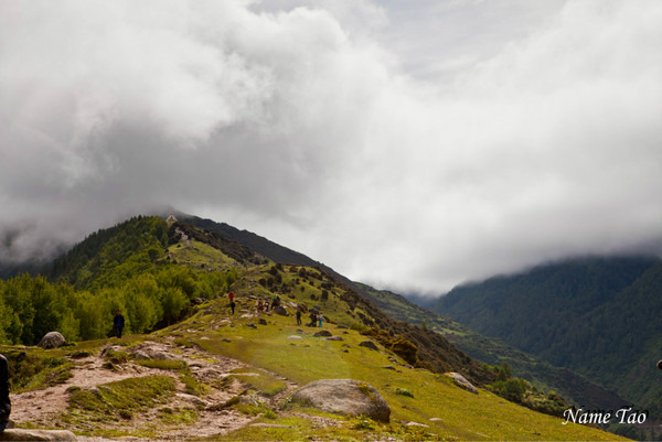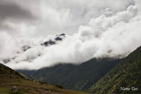 还未到锅庄坪,我就问牵马的师傅,他说这里已经一个月没见过四姑娘了,还说今天看见的可能也不大,昨天晚上我就在为见四姑娘一面做打算,本来是打算在锅庄坪等着四姑娘出来,要不就去猫鼻梁等,可是想想这种事是可遇不可求的,而且既然买了票就往后面走吧,真真儿的没想到我的运气实在是perfect...在看到幺妹的一瞬间,我激动了,从马上下来就直接跑向山头,全完忘记了这是在高原,结果就是没跑两步就开始觉得头发晕,四肢无力,眼冒金星,但还是忍着不适抓紧给四姑娘拍了几张,生怕她在“害羞”起来...幸福感也随之而来...高原的天气变的很快,没一会云雾又包围了四姑娘...于是我们继续前行...