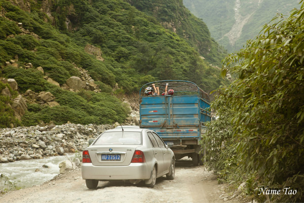 看到第一个场景的时候我觉得真有NB的人!!!!可是看到第二个的时候。。。。看来在这种路况下想骑车进山不是个容易事儿啊!司机说到底这里是高原!但还是很佩服这帮人!!趁着年轻,做自己想做的事情!